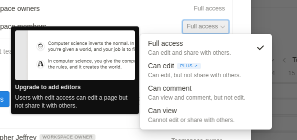 can comment, can view, has the same effort relatively to ‘can edit’. but can edit is (they thought) to be quite valuable, so dikasih gate disitu. harus bayar dulu.